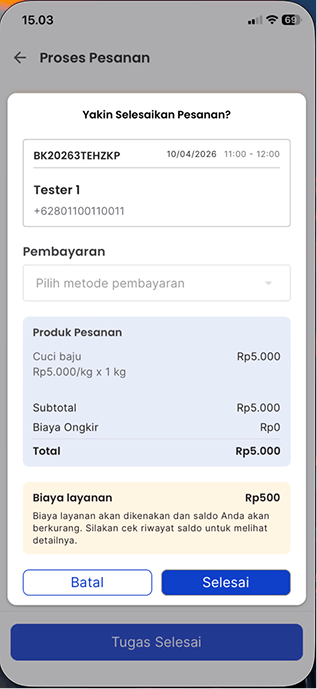 Pada tahap ini, Anda dikenakan biaya layanan yang dipotong dari saldo. Klik Selesai untuk menyelesaikan pesanan.